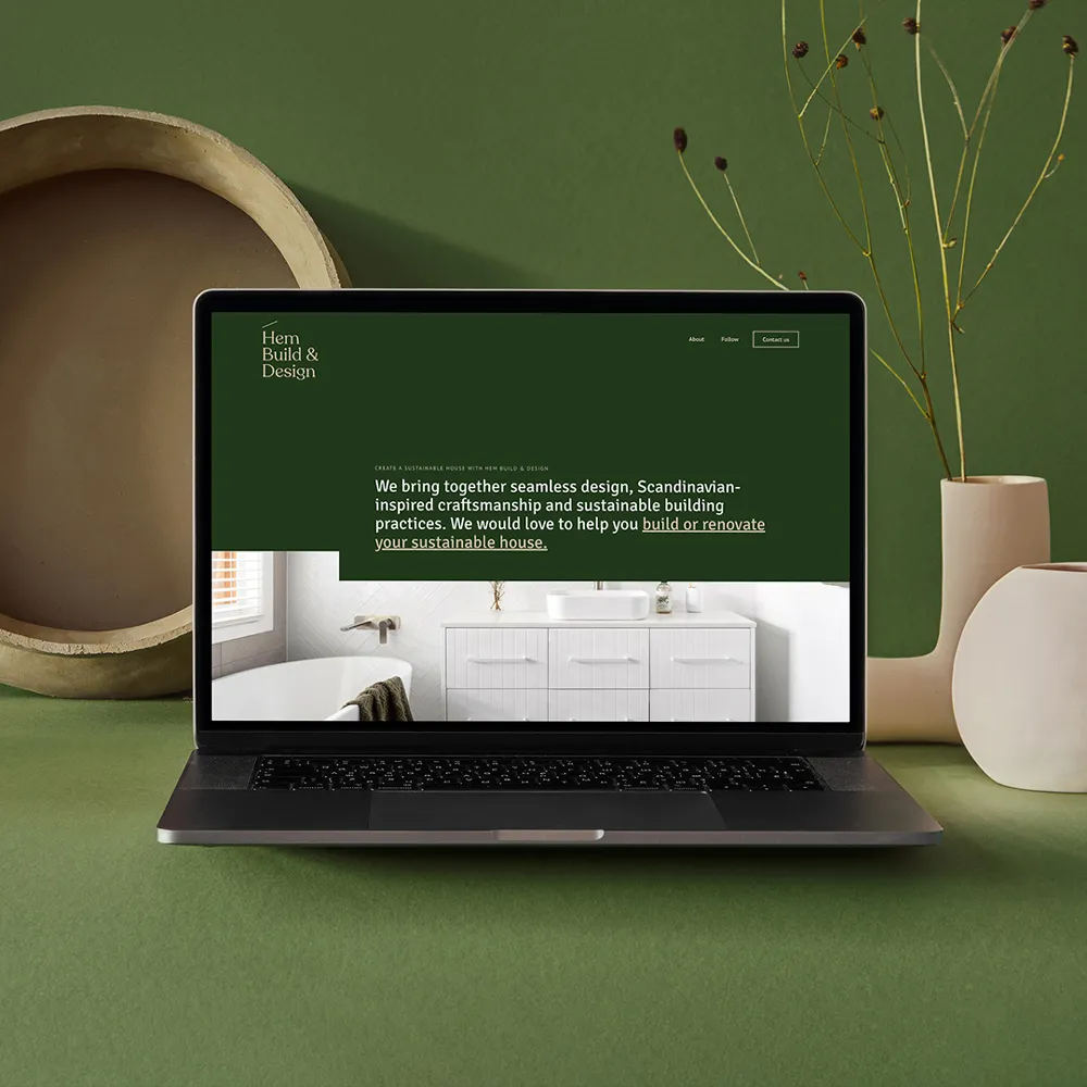 We started with a discovery session where we learned about Pete’s construction experience in Scandinavia and Anita’s passion for sustainable house plans and interiors. Our first priority was to determine a brand position and name. We settled on ‘Hem Build & Design’ — ‘hem’ being the Swedish word for home. As well as being a nod to the brand’s Scandinavian inspiration, ‘hem’ is simple, clean and easy to pronounce. We also established Hem’s core values: clarity, preservation and quality.